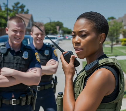 As she stepped out of her vehicle, dressed in her tactical vest, two local officers approached her, their expressions cold, their posture rigid.