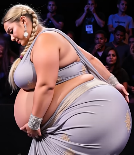 She reached the center of the stage, closed her eyes, and placed her hands gently on her stomach, cradling it as though holding the weight of something sacred. The lights dimmed slowly, leaving her in a soft, glowing halo, while a low, resonant hum filled the air — a sound that seemed to come not from the speakers, but from somewhere deep within the earth itself.