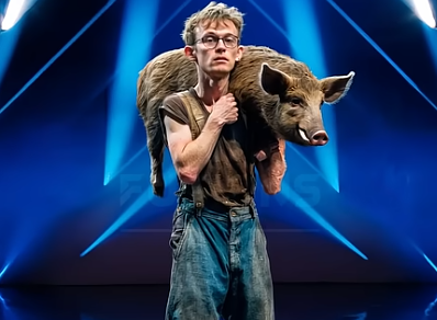 He stood calmly under the bright lights, holding what looked like a young boar in his arms. The judges exchanged curious glances, wondering how this unexpected pairing could lead to a memorable act. Without saying much, he set the animal down gently and waited as soft, atmospheric music began to fill the room.