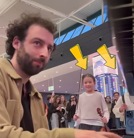 The pianist glanced at them and gave a small nod. Without hesitation, the sisters lifted their violins. The moment their bows touched the strings, the air shifted. Notes of crystal clarity cut through the airport chatter, weaving into the piano’s stormy rhythm.