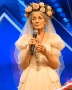 That night, in a wedding dress on a talent-show stage, she transformed personal pain into universal beauty. She proved that sometimes, the most unexpected costumes carry the deepest truths—and that a single voice, brave enough to sing its story, can unite an audience in tears and triumph.