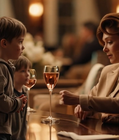 Amelia Harrow, one of the most influential businesswomen in the city, was having a quiet lunch at an upscale hotel when two small, dirt-covered boys approached her table. Their clothes were torn, their hair tangled, and their eyes carried a kind of sadness only life on the streets could teach. One of them stepped forward, voice trembling but polite. “Ma’am… could we have some of your leftover food? We haven’t eaten since yesterday.”