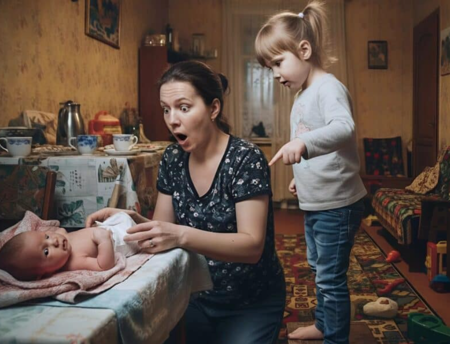At that moment my daughter suddenly frowned, froze, and quietly asked, pointing her finger at my niece: